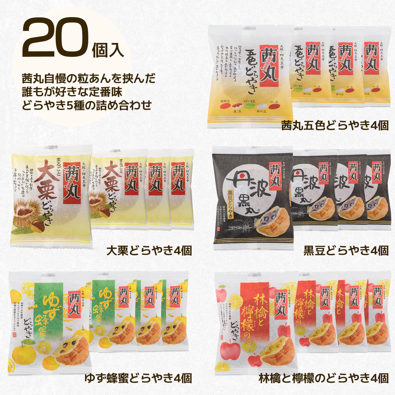 [どらやき・化粧箱詰め]人気のどらやき詰合せ20個入(5種類:五色・大栗・黒豆・ゆず・林檎各4)
