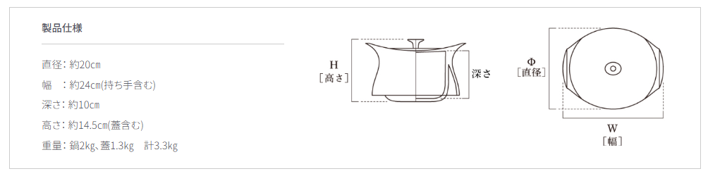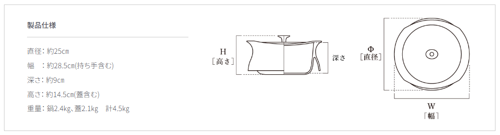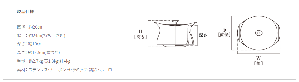 推奨容量:ごはん4 ~ 5 合分・2 ~ 4 人分のお鍋や肉魚の丸ごと使った料理