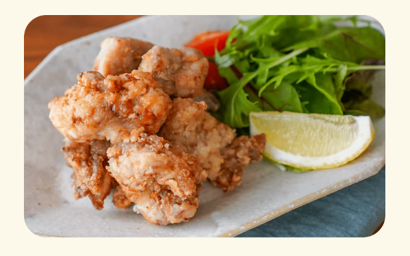 衣の中はしっとりジューシーで、味付けは強すぎず、素材の良さが前に出る印象。6個入りでシェアしやすく、食卓の一品としても使いやすい。揚げ物でありながら重たくなりにくく、幅広い年代に合わせやすい唐揚げ。