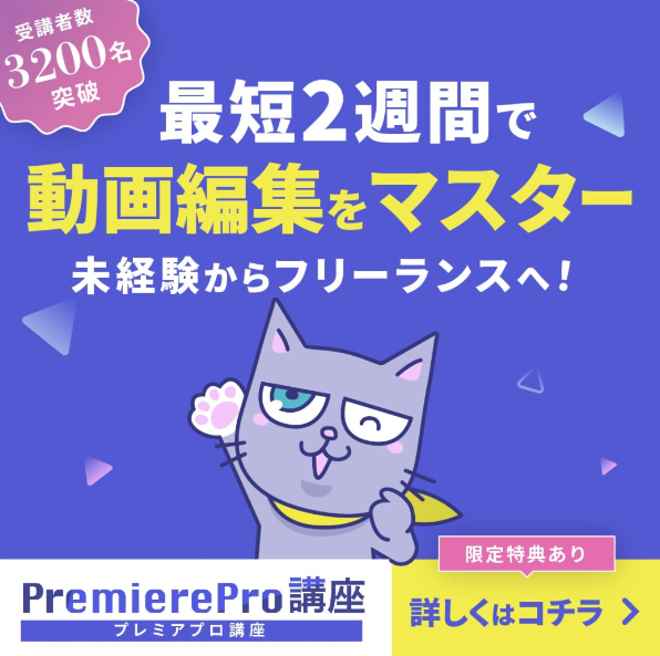 動画編集スキルの習得から仕事としての活用までを一貫して学びたい人にとって、**クリエイターズジャパン**のプレミアプロ講座は、実用面を重視した構成の講座だといえます。